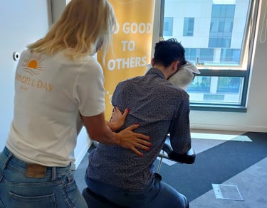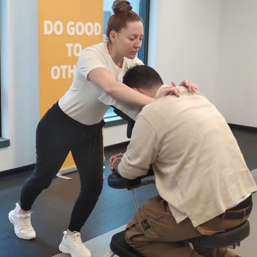 In just 20 minutes, we offer your team the chance to release tension, breathe deeper, and reconnect with themselves — all without leaving the office or changing clothes. Our certified therapists arrive with everything needed to create a peaceful atmosphere: premium ergonomic chairs, calming scents, gentle music, and a warm, respectful presence. We manage the entire experience from start to finish, ensuring it flows effortlessly into your company ’ s rhythm